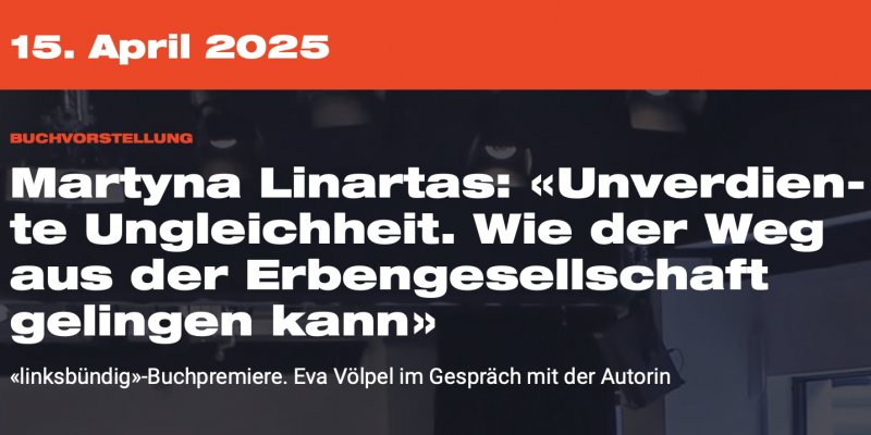 Zu Gast im Studio: Martyna Linartas, Politikwissenschaftlerin und Autorin. Sie forscht zu den Themen Ungleichheit in der Vermögensverteilung und Umverteilung von Reichtum. 2025 veröffentlichte sie im Rowohlt Verlag das Buch "Unverdiente Ungleichheit....