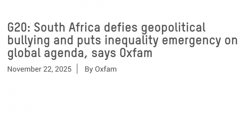 Oxfam | “This is the first ever meeting of world leaders, in history, where the inequality emergency was put at the center of the agenda. This is testament to South Africa’s leadership – one that put the billions before the billionaires.