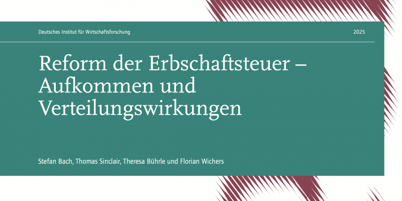 DIW | In diesem Forschungsprojekt von Stefan Bach, Thomas Sinclair, Theresa Bührle und Florian Wichers, werden die Aufkommens- und Verteilungswirkungen von Reformmodellen zur Erbschaft- und Schenkungsteuer untersucht. Die Reformmodelle, die im Rahmen der DIW-Reihe "Politikberatung kompakt" (208) des...