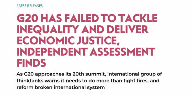 New Economics Foundation | As G20 approaches its 20th summit, international group of thinktanks warns it needs to do more than fight fires, and reform broken international system.
